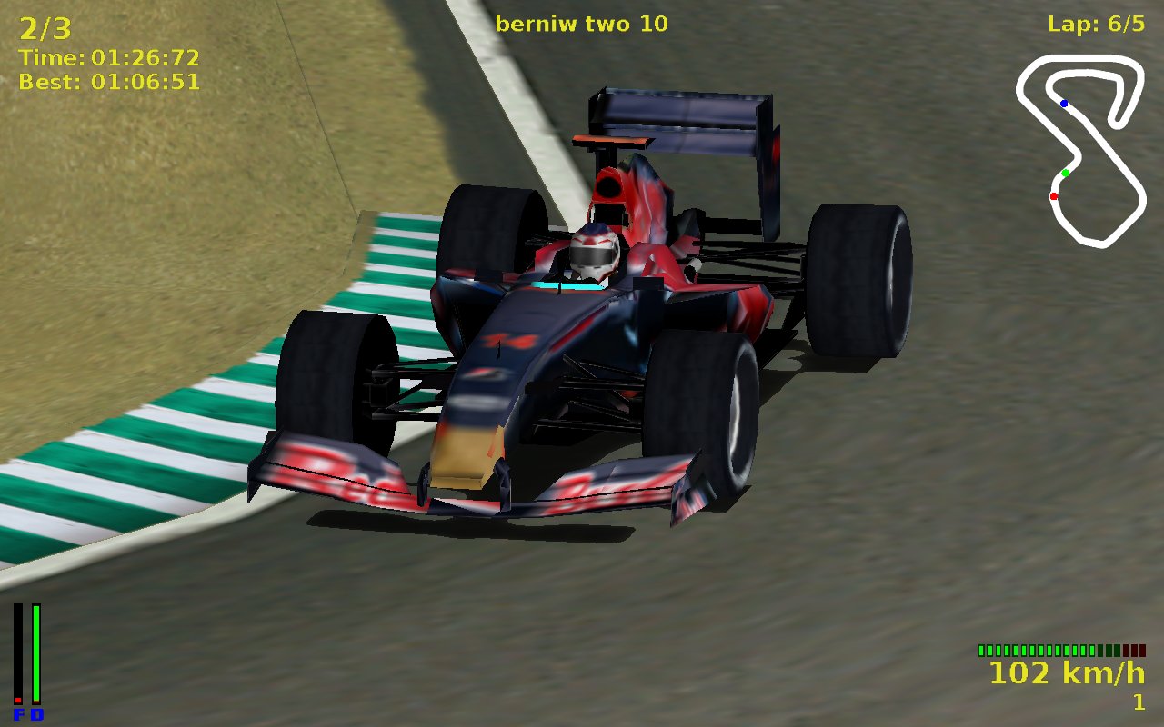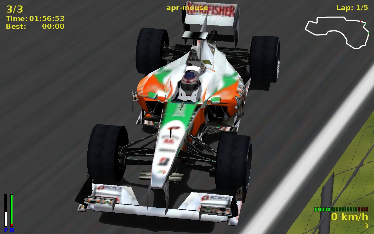 Sin retocar demasiado la situacion de triangulos en el uvmapping de la textura ha quedado un resultado bastante aceptable para esta primera versión. Ahora ya si se pueden hacer carreras con 20 coches como en la f1 actual.