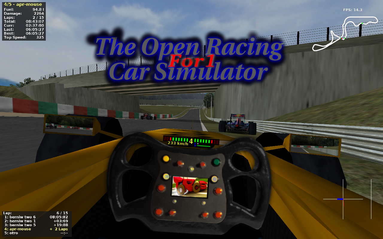- Interfaz: De un vistazo rápido a la imágen se observa esos retrovisores situados en el mismo sitio que en los formula 1. En el Torcs actualmente solo tenemos el retrovisor centro-superior. Además tambien podemos observar el display de velocidad,revoluciones, daños, combustible y marcha, en el centro, justo por encima del volante, al estilo redbull y mclaren08. Se comprueba que la interfaz que propongo es una mezcla de las dos posibilidades actuales de Torcs.